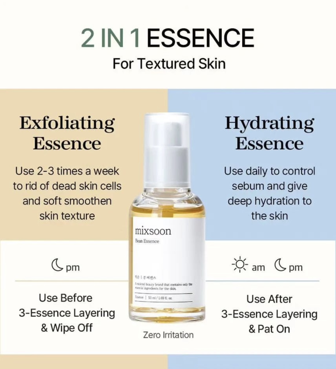 Mixsoon Bean Essence is the number 1 multi-tasking essence /exfoliator/serum that helps to bring dull skin back to life.